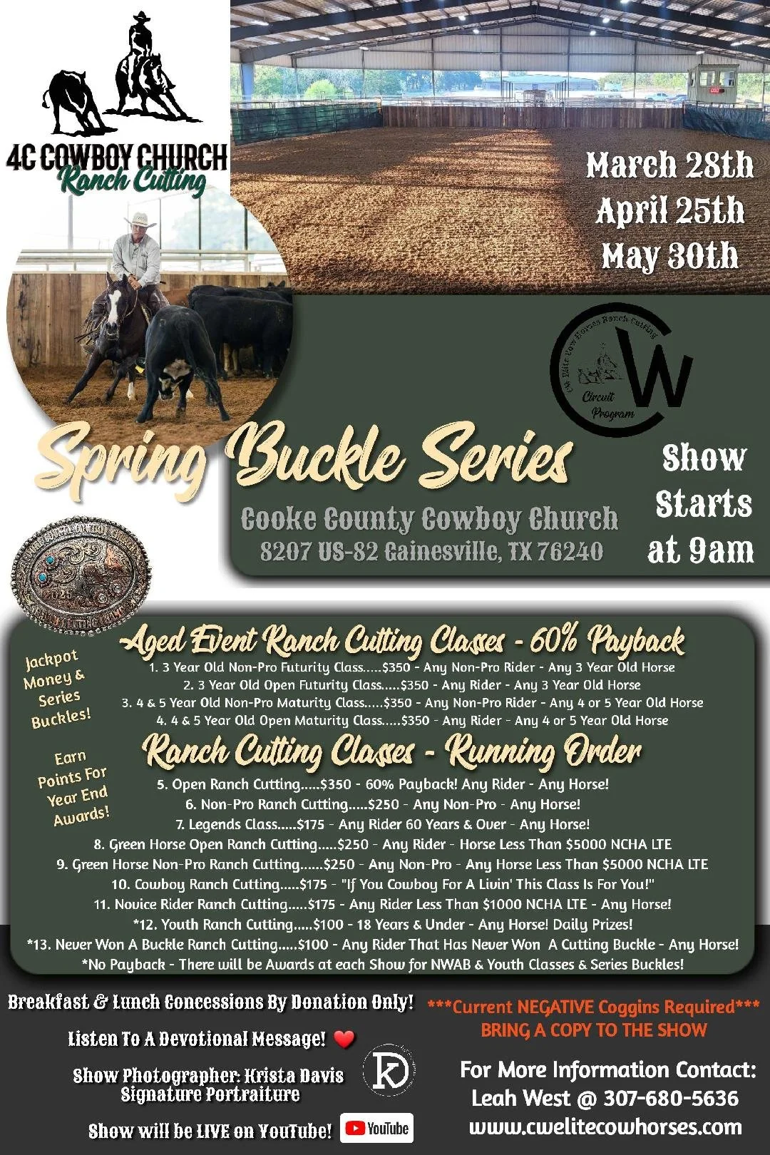 These shows are included in the 2026 CW Elite Cow Horses Ranch Cutting Circuit. We have a Year End Awards Banquet at the end of the Year!